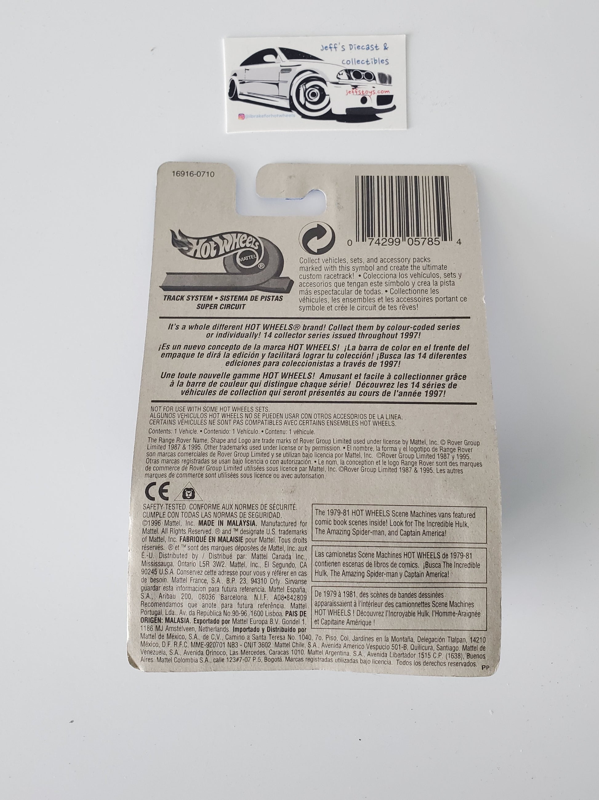 1996 Hot Wheels Range Rover #544 - Rare International Long Card